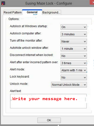 - Now you can Eusing Maze Lock pattern window where we have to save some settings.