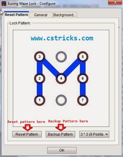 Set pattern as per your choice by dragging your mouse and if you want to take backup of your pattern then select ” Backup Pattern “. Backup pattern will be save in BMP format so that if you forget your pattern then you can easily check it.