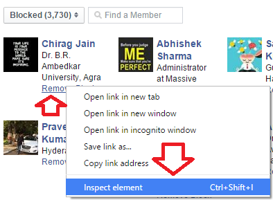 2. Right click on any “remove block” button, under some blocked person.