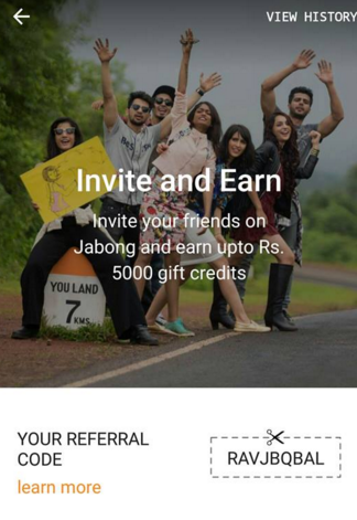 - To start earning, login to the latest version of Jabong IOS or Android app. Invite and Earn program is not valid on the Jabong Windows App.