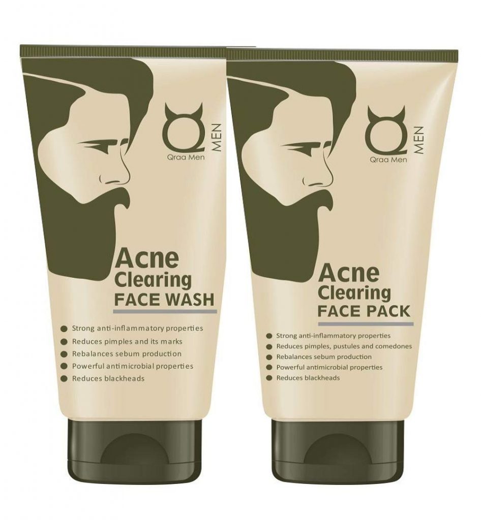Qraa Men Clearing Face Wash, 100 g and Acne Clearing Face Pack for Men, 100 g Prevents and Clears Pimples